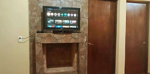 Contamos con 2 recámaras equipadas con 2 camas individuales y 1 cama doble, ideales para grupos o familias. Además, nuestras instalaciones incluyen una sala con TV y chimenea, perfecta para relajarse después de un día de aventura.